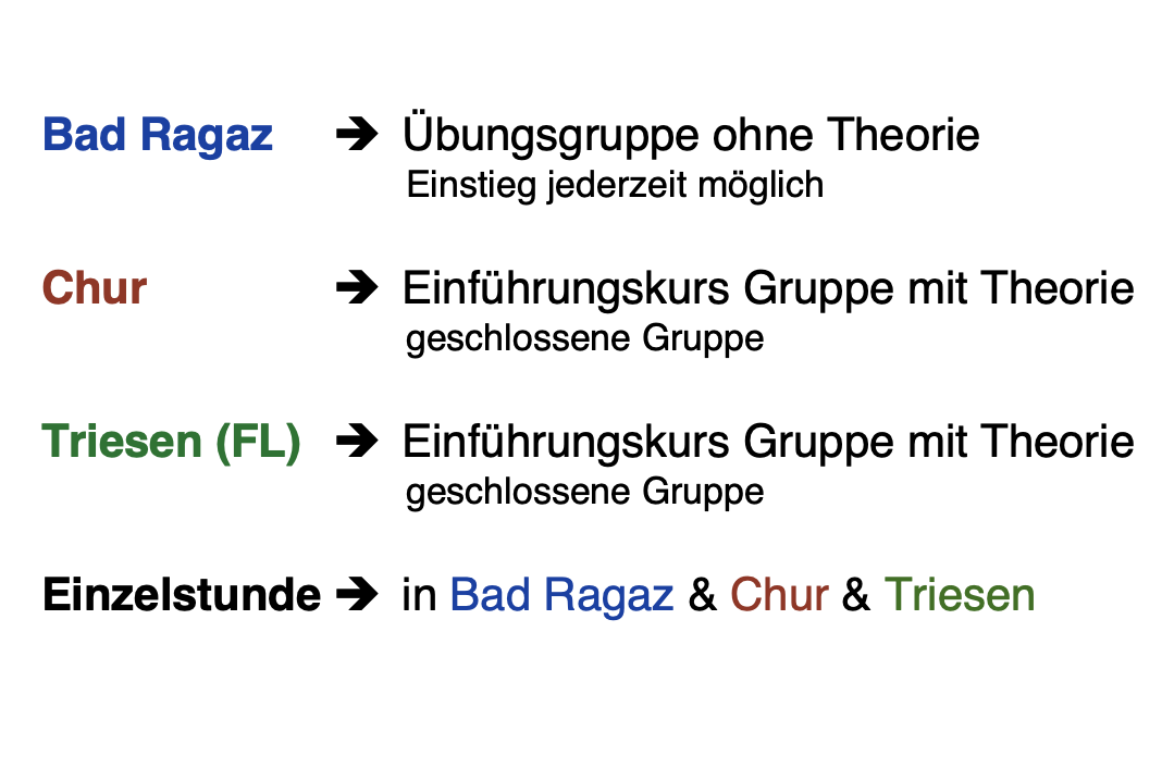 Einführungskurs, 3 Abende (3 x 120 min) CHF 140.-