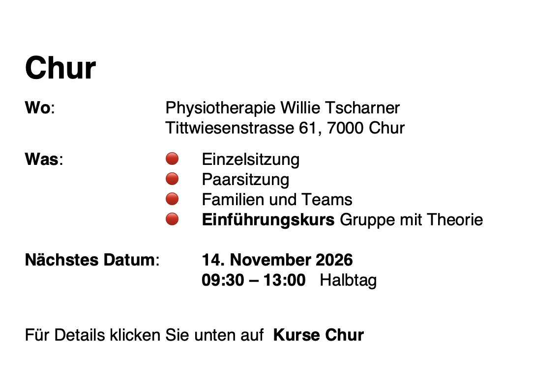 Auch hier empfehle ich 2-3 Sitzungen, da mit TRE ein Prozess angestossen wird, der viel in Bewegung bringen kann.