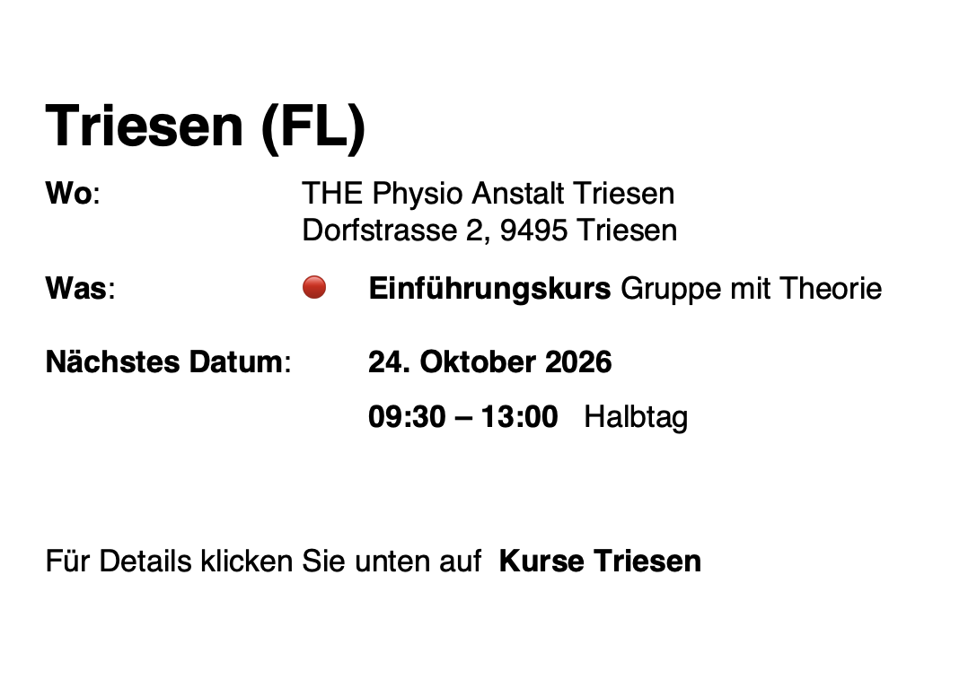 Ich empfehle 2-3 Sitzungen, damit Du Dich sicher fühlst, die Übungen auch alleine anzuwenden.